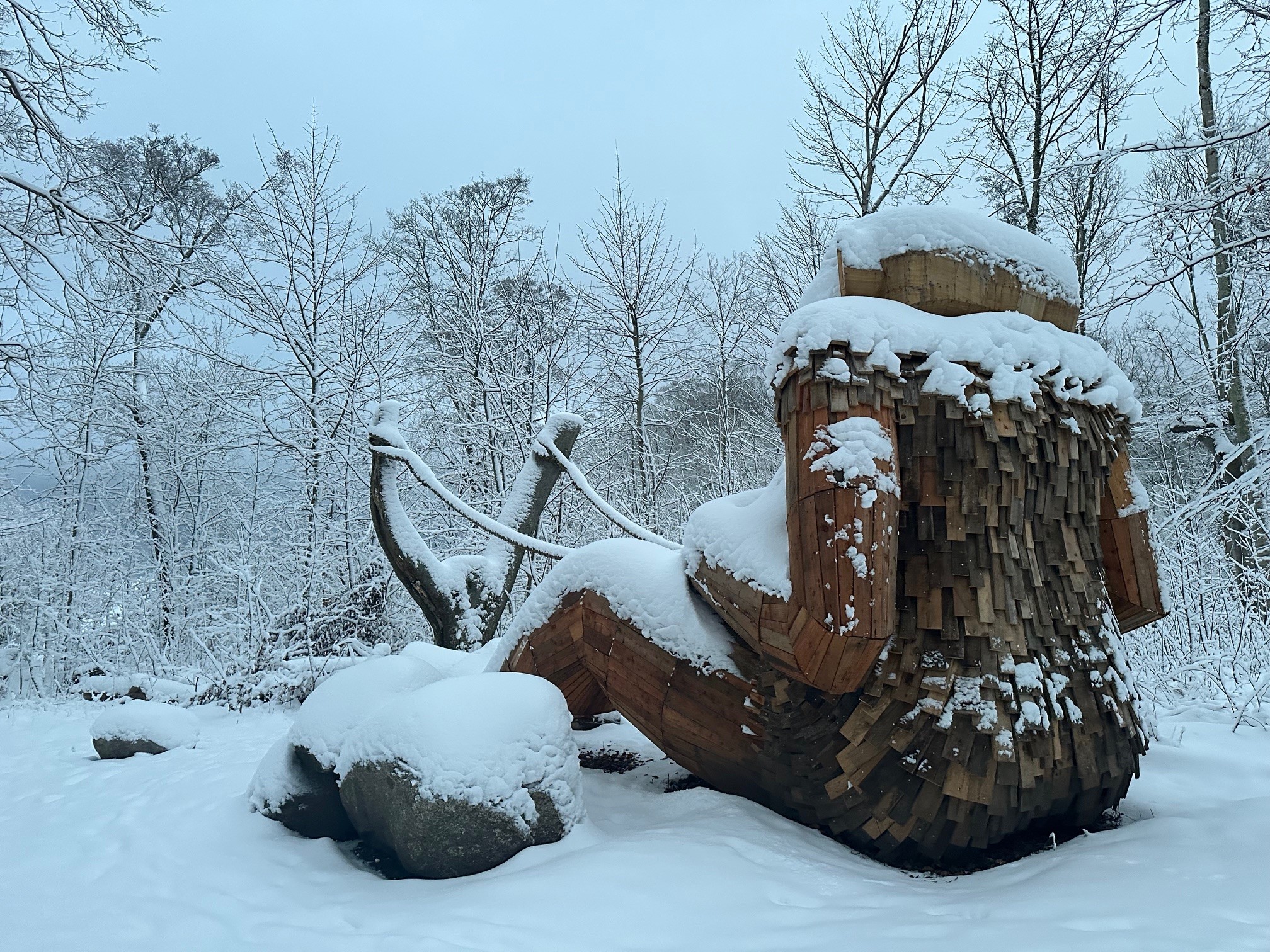 Trolden er bygget af overskudstræ, genbrugspaller og andre genanvendte materialer, hvilket understreger projektets fokus på bæredygtighed, genbrug og omtanke for naturen. Ebbe Skytte er et levende bevis på, hvad der kan opstå, når kreativitet, samarbejde og ansvarlighed går hånd i hånd.